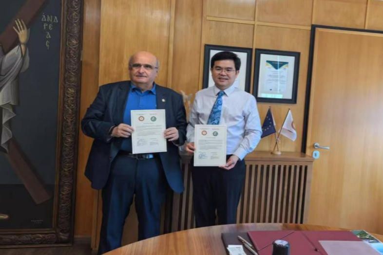 6月23日,代表团首站访问希腊帕特雷大学(University of Patras),与校长克里斯托斯•布拉斯(Christos Bouras)、学术与国际事务副校长迪奥尼修斯•曼察维诺斯(Dionissios Mantzavinos)举行会谈。双方正式签署合作意向书,致力于创建“一带一路”智慧农业技术与装备国际联合实验室,同步启动学生互换交流与境外办学项目,标志着中希高校合作迈入深度融合新阶段。当日,代表团还拜访了历史悠久的希腊雅典科学院,美国国家工程院院士、希腊科学院院士、希腊雅典国立技术大学化学工程教授Doros Nicolas Theodorou等热情接待。双方就开拓科技合作渠道、促进完美app官方在线入口与希腊雅典科学院开展技术交流、高层次人才引进与输出达成共识。