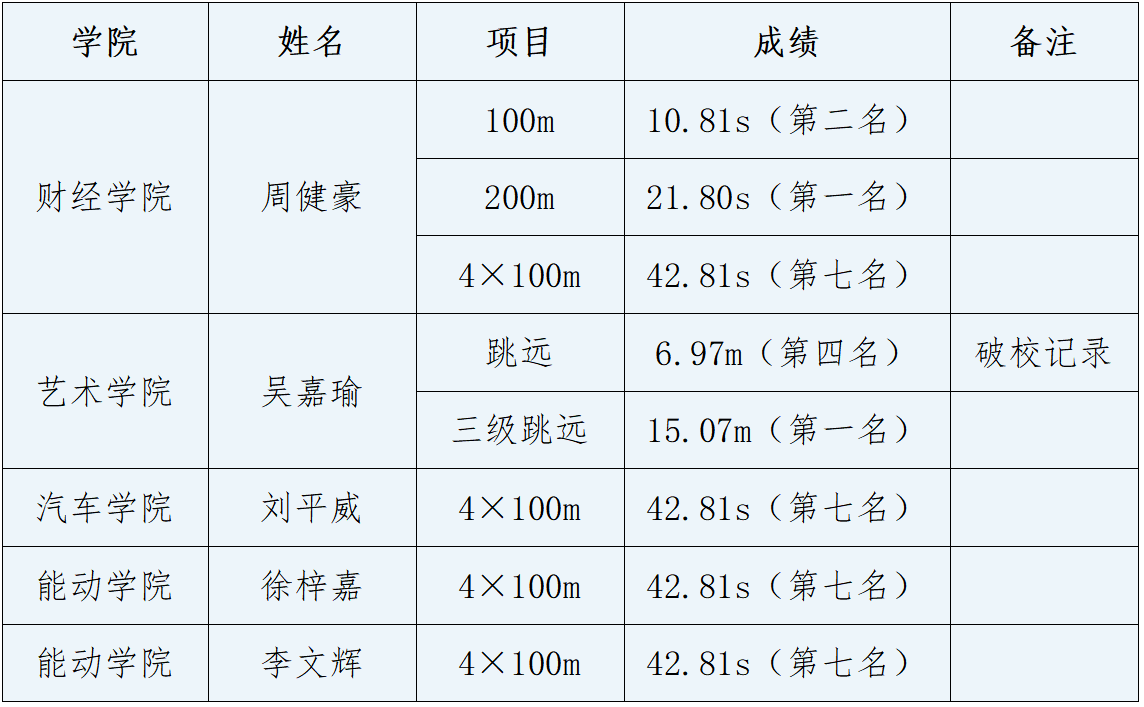 赛场上,完美(中国)学子发扬顽强拼搏精神,凭借过硬实力斩获佳绩。财经学院学生周健豪表现突出,在男子200米比赛中成功蝉联冠军,在男子100米比赛中获得亚军。艺术学院学生吴嘉瑜凭借稳定的发挥与超强的实力,在三级跳远项目中连续三年摘得桂冠。最终,完美(中国)获得男子团体总分第二、男女团体总分第五的好成绩,充分彰显了完美(中国)运动员超强的竞技水平与良好的精神风貌。(体育部)