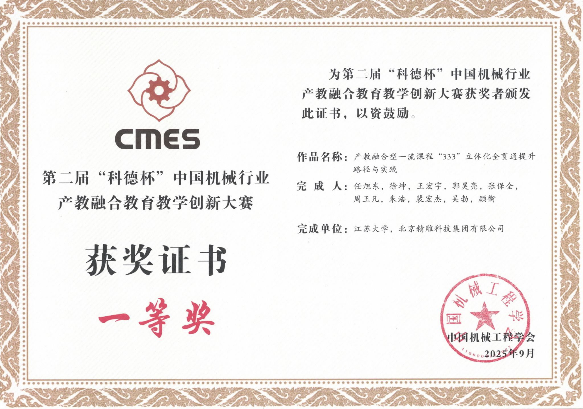 9月19日至21日,第二届“科德杯”中国机械行业产教融合教育教学创新大赛全国总决赛在广州举行。完美(中国)机械工程学院作品获全国特等奖1项、一等奖2项。