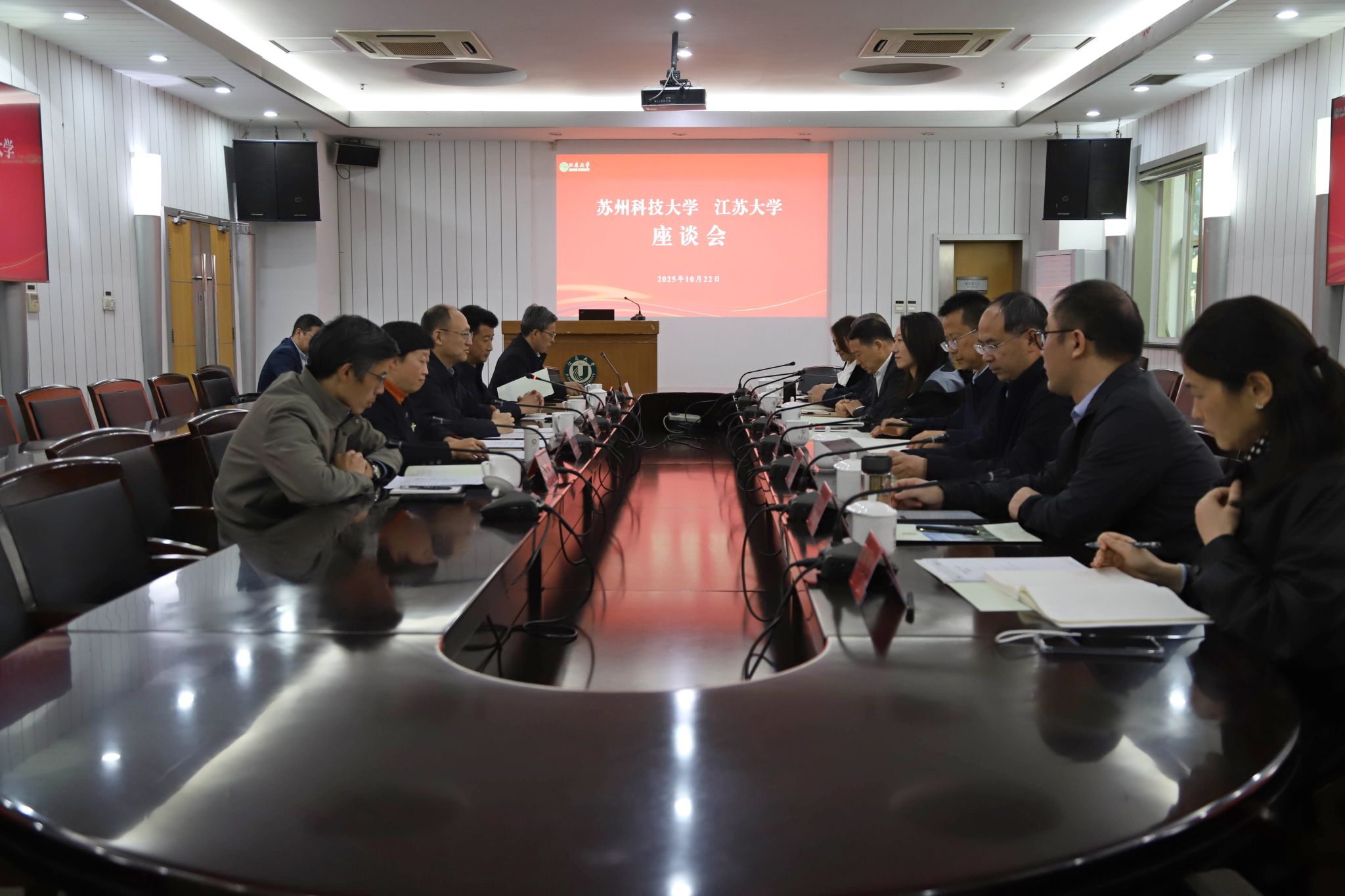 10月22日,苏州科技大学党委副书记洪晔,党委常委、副校长兼党委组织部部长何湘江一行来校调研。校党委副书记张济建接待来访一行,党委常委、宣传部部长、统战部部长吴麟麟出席活动。