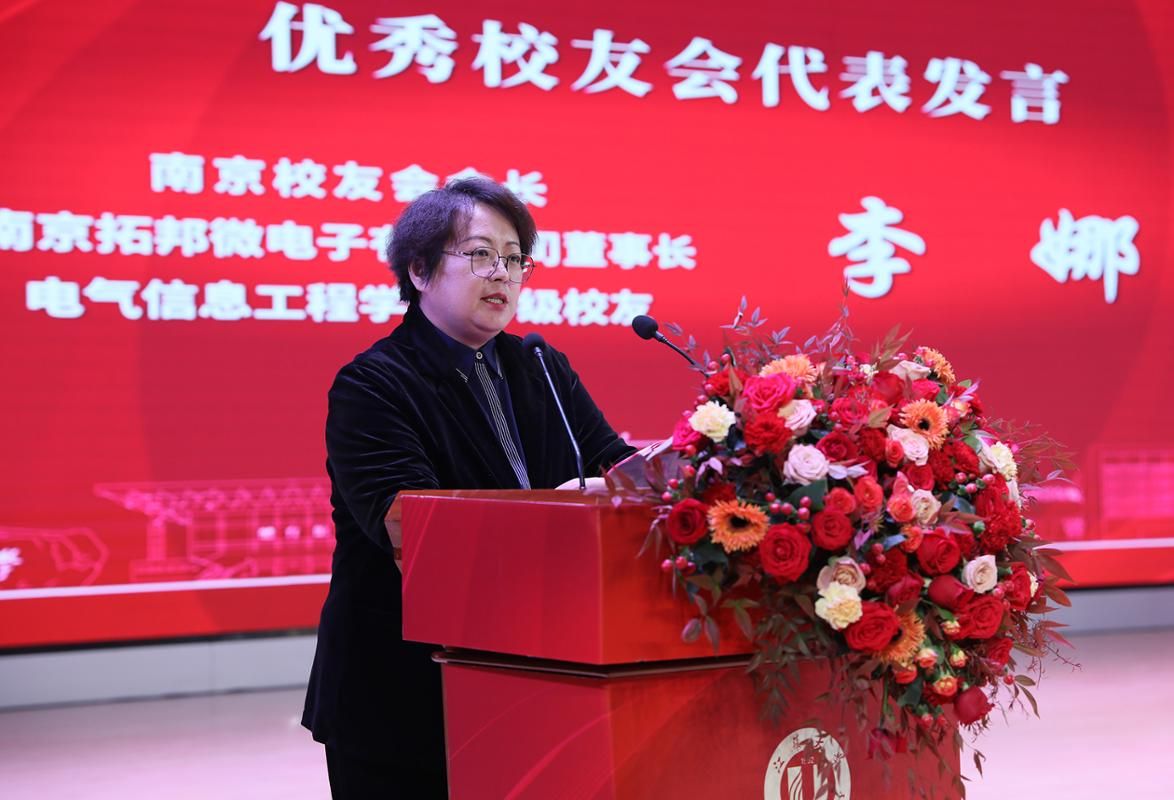电气学院89级校友、南京校友会会长、南京拓邦微电子有限公司董事长李娜代表优秀校友会作交流发言。