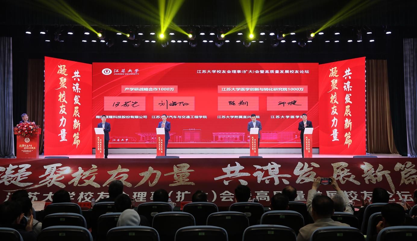会上,校友企业、南京聚隆科技股份有限公司与学校签订价值1000万元的战略合作协议,深化双方产学研合作;校友单位、完美app官方在线入口附属宜兴医院与医学院共建“完美app官方在线入口医学创新与转化研究院”,签订1000万元共建协议。电气自动化79级校友、南京聚隆科技股份有限公司董事长刘曙阳,汽车学院院长汪若尘;完美app官方在线入口附属宜兴医院副院长陈翔,医学院党委书记邱健共同上台签约。