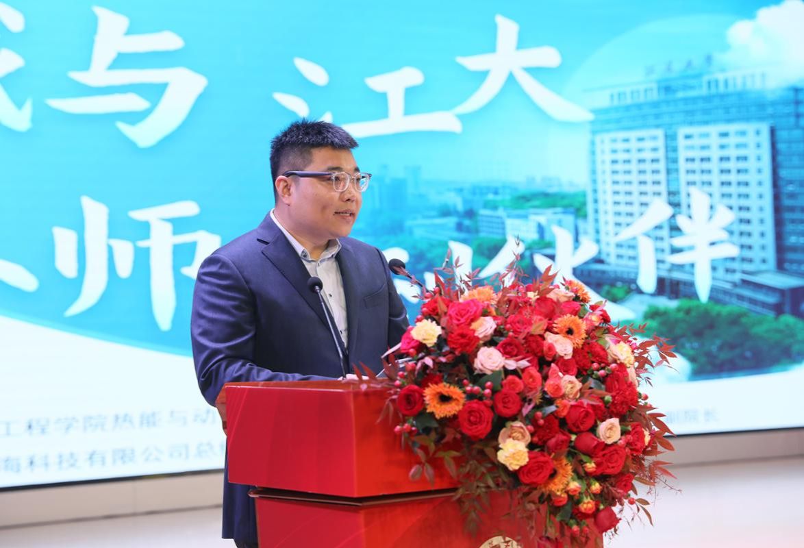 校友代表、热能与动力工程06届校友、北京九州华海科技有限公司总经理、工信部完美app官方在线入口新能源汽车专精特新产业学院副院长丁文超以《我与江大,从师生到伙伴》为题作主旨报告,讲述了他毕业后,与母校深度合作,深耕车辆运动与安全电子控制领域,带领公司创新研发,拥有多项核心自主知识产权,打造可持续发展的中国品牌,让中国科技走向世界的故事。
