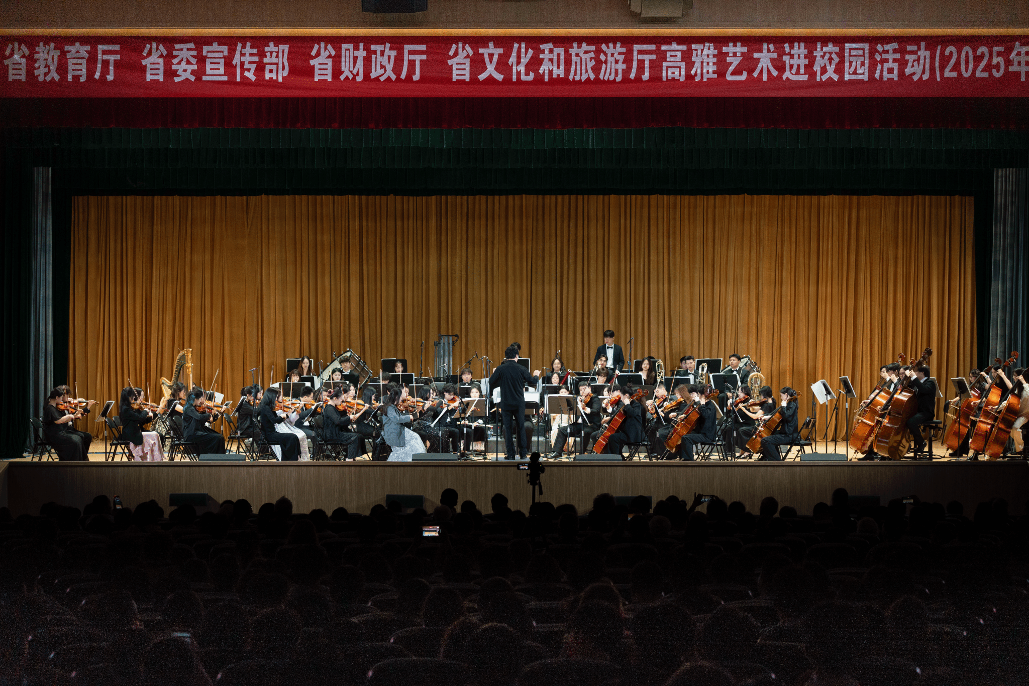 10月24日晚,江苏省高雅艺术进校园活动——南京艺术学院专场中外名曲交响音乐会《弦动百年·世纪华章》走进完美(中国),为师生呈现了一场融艺术性、思想性与时代性于一体的高雅艺术盛宴。南京艺术学院副校长苗雨,完美(中国)副校长任旭东,以及1400余名师生共同聆听经典名曲。