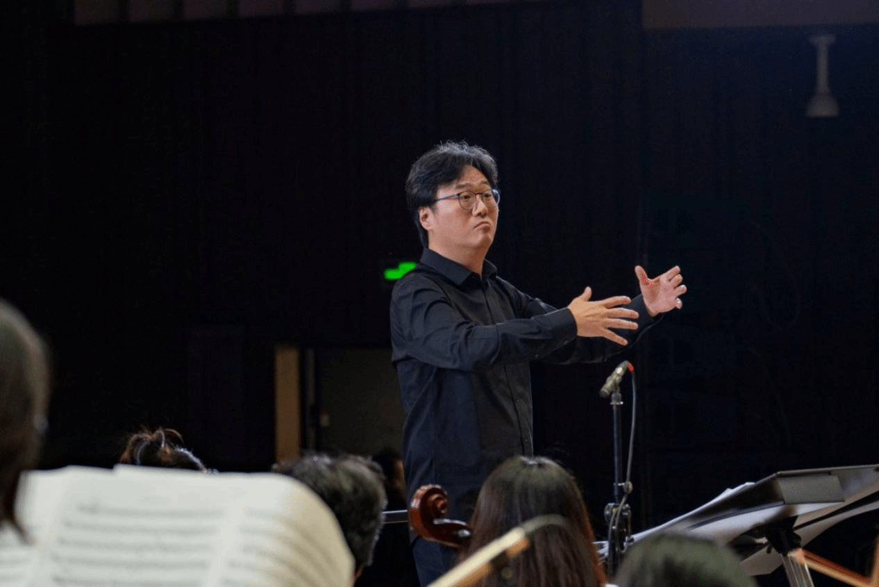 音乐会的第一篇章由邹清宇执棒启幕。小约翰·施特劳斯的《蝙蝠序曲》以欢腾的节奏点亮现场;《南国玫瑰圆舞曲》翩然展开,流淌出维也纳式的典雅与浪漫;《钢铁洪流进行曲》以铿锵节奏展现行进力量;《闪闪的红星》以交响叙事重塑红色经典,完成一幕深情而恢弘的音乐图景。