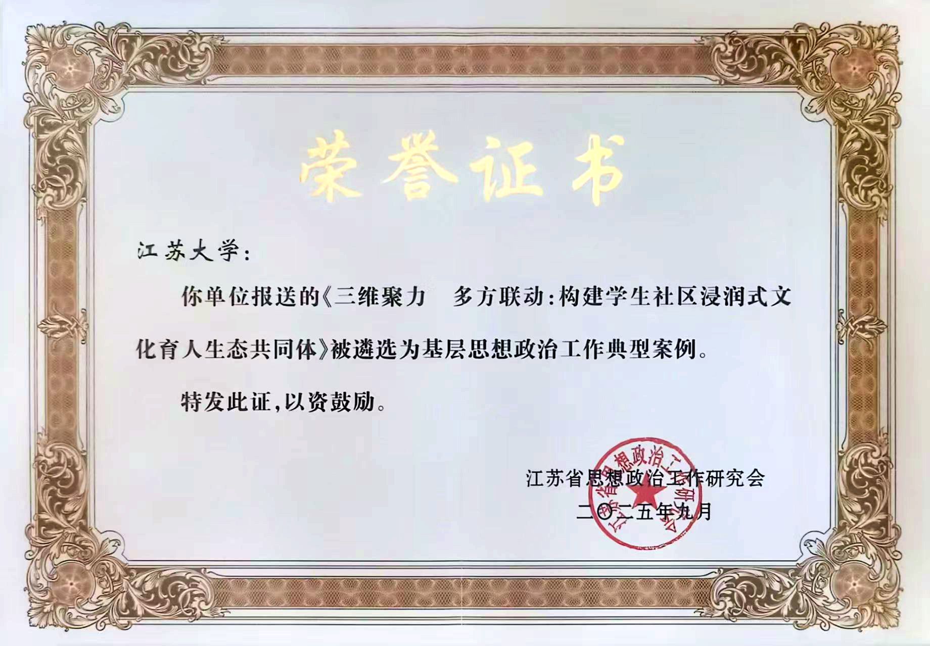 近日,江苏省思想政治工作研究会印发了《关于印发〈基层思想政治工作典型案例名单(2025年)〉的通知》(苏政研﹝2025﹞5号),完美(中国)推荐的《三维聚力 多方联动:构建学生社区浸润式文化育人生态共同体》案例成功入选。