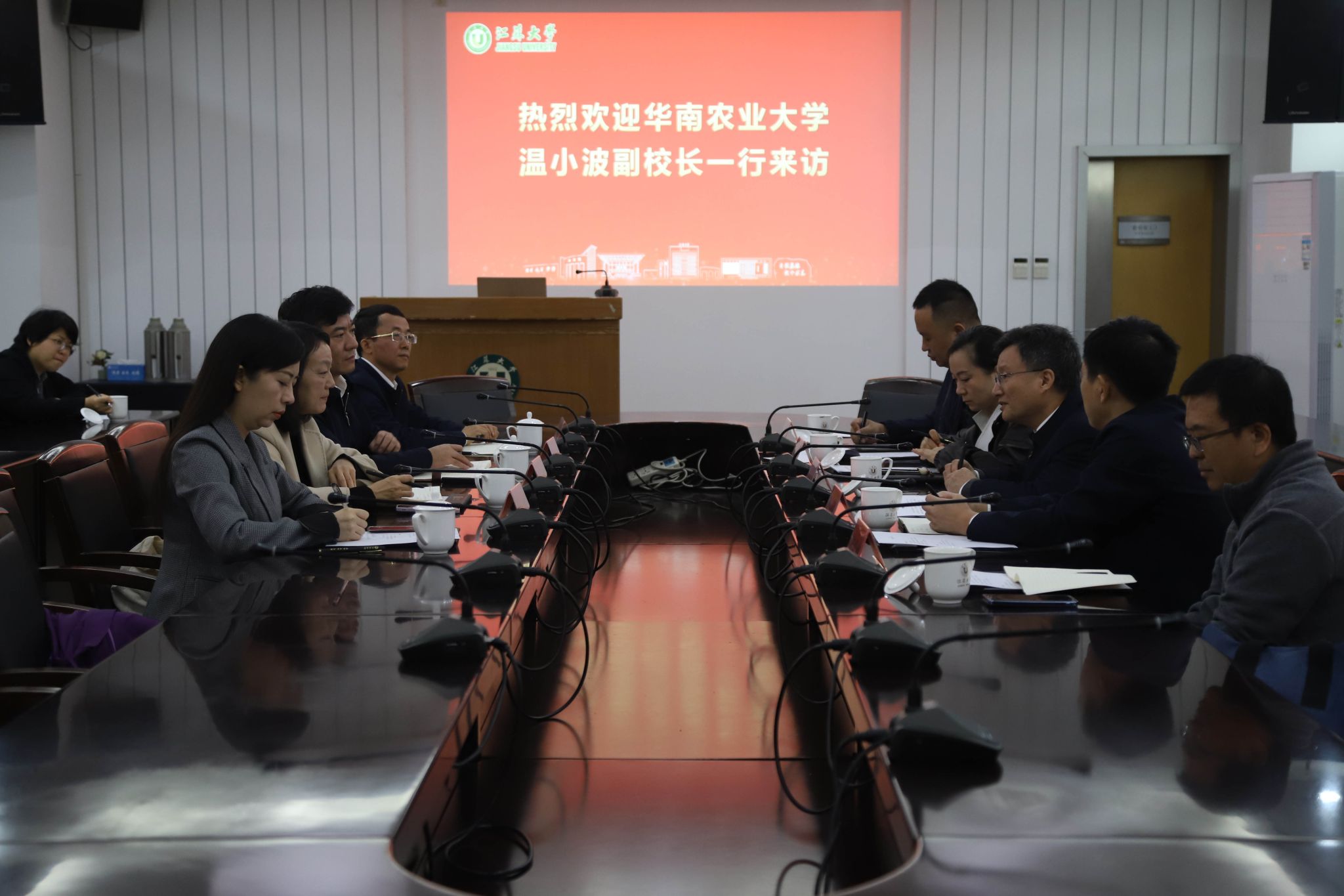 11月7日,华南农业大学副校长温小波一行来校调研,副校长陈红接待来访一行。