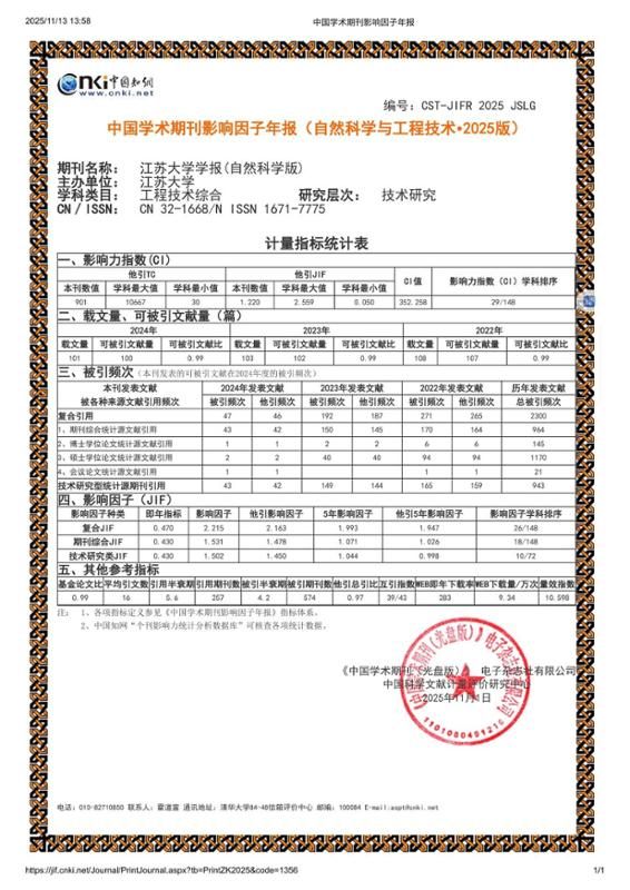 《排灌机械工程学报》影响力指数在国内23本农业工程类期刊中排名第3位,在99本机械工程类期刊中排名第4位,复合影响因子从2.589(2024年)提升至3.061,增幅为18.2%。