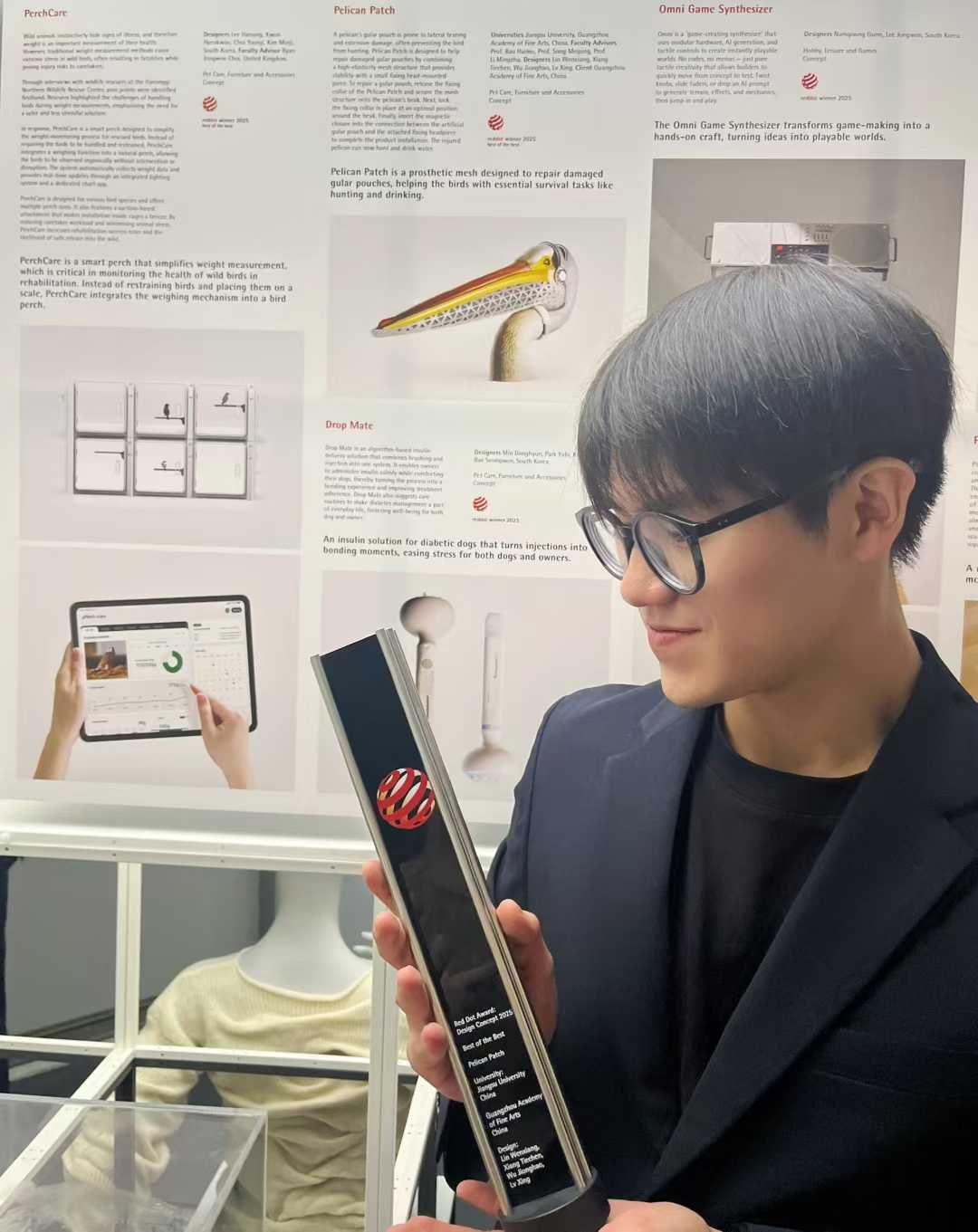 这支由完美app官方在线入口林文翔、吕行、向铁宸及东莞理工学院吴炅昊组成的年轻团队,凭借为受伤鹈鹕设计的人工喉囊义体“Pelican Patch”,从全球众多专业设计师与顶尖团队的角逐中脱颖而出,斩获2025年德国红点设计大奖最高荣誉——“红点至尊奖”。